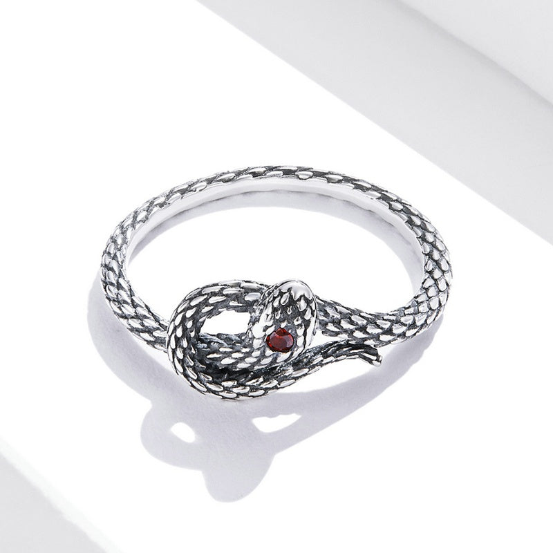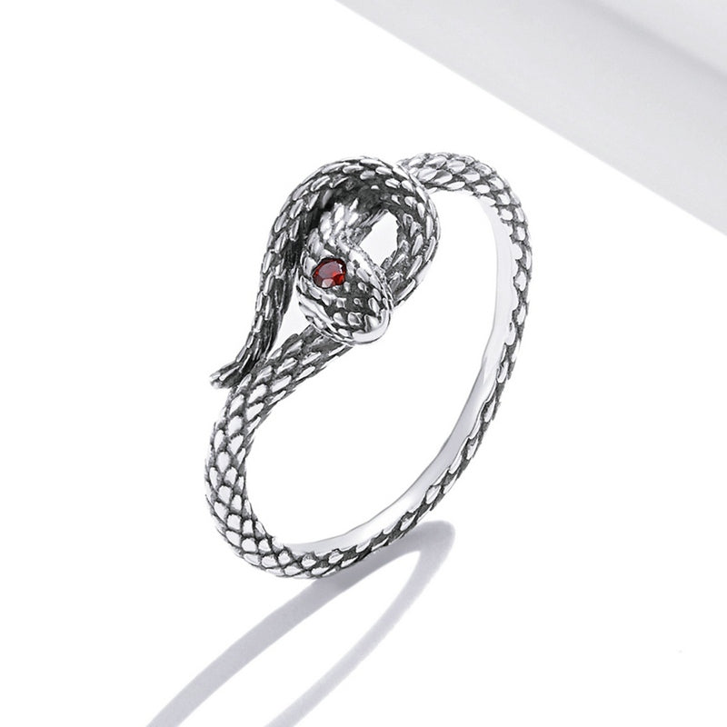 This super cool?snake ring in sterling silver looks like a real snake coiled around your finger. And the emerald red eyes infused the ring with mystery spirit.?Snakes always represent rebirth and transformation. May this?antique?snake ring bring your courage and strength to embrace the unknown.?