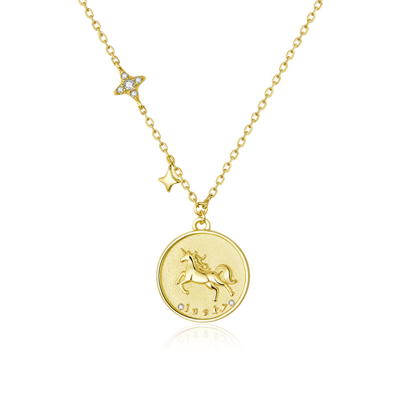 Our unique unicorn jewelry hoop earrings and necklace set are in gold vermeil on sterling silver.
