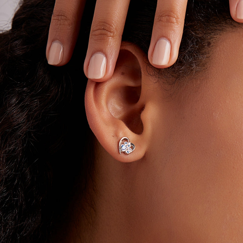 Precious and Nickel free, these adorable earrings are perfect for an everyday go-to staple. Crafted from high polish finish sterling silver with inlaid blue Cubic Zirconia. Wearing these too cute to resist pair of stud earrings are your sensational way of showing your love for your furry cute Partners.