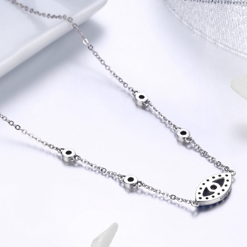 Absolutely stunning piece of blue eye necklace in sterling silver!?Beautiful piece, really sparkles! You will receive lots of compliments for these blue eye necklaces. You can wear it individually or layer it with some other more simple necklaces.