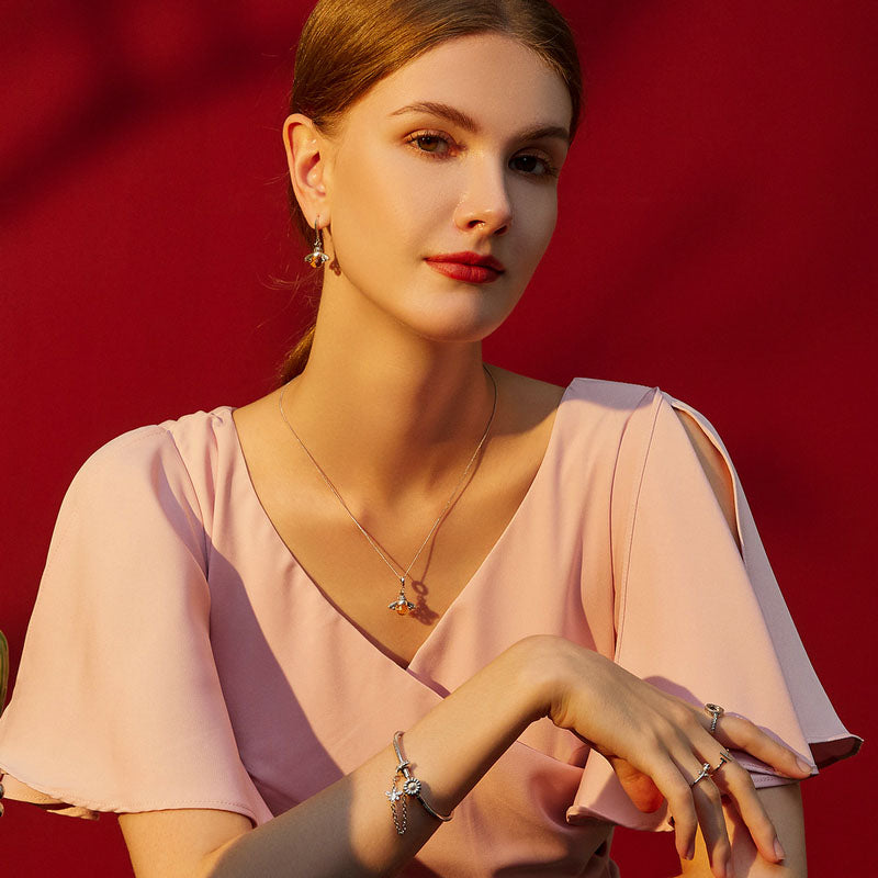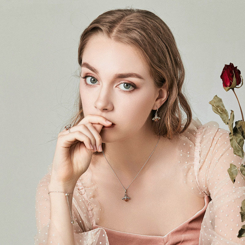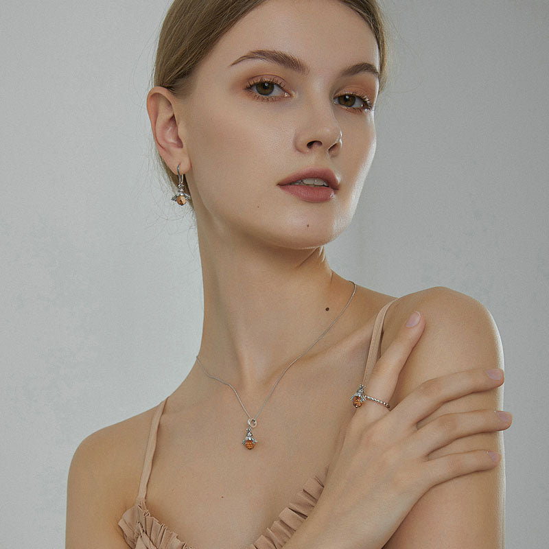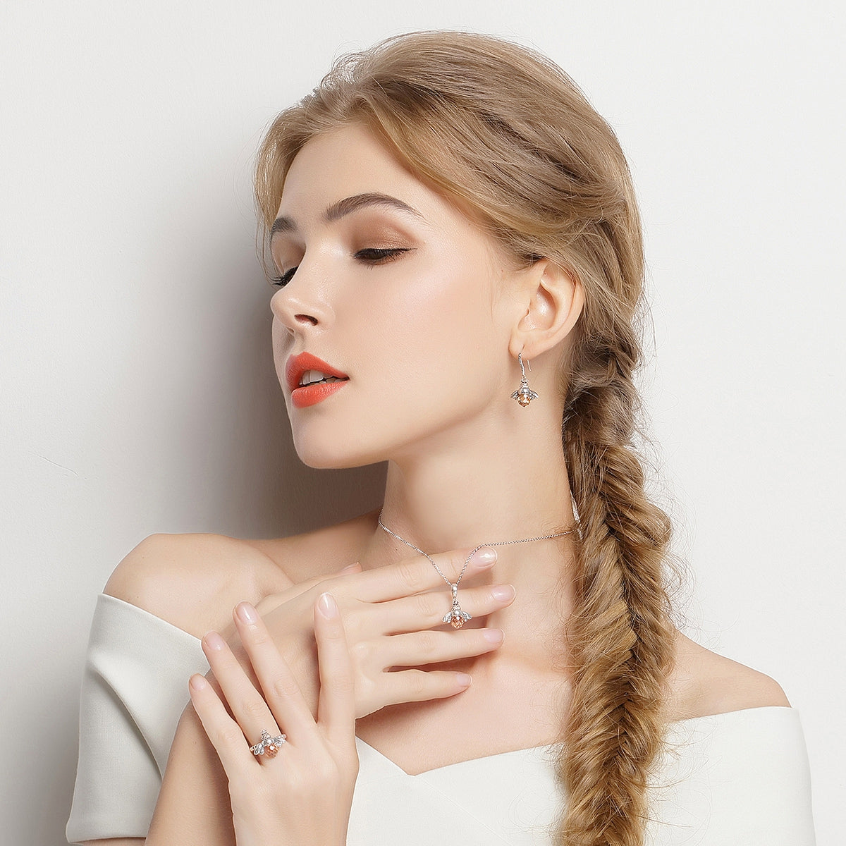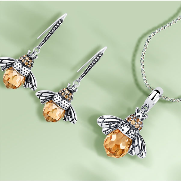 The gorgeous design of the Czech Diamonds bee?jewelry set?makes it unusual jewelry to add to your collection. This necklace and drop earrings are certified and authenticated sterling silver. Worn individually on your neck will never go out of style. Tell your own story on you that is unique to you!
