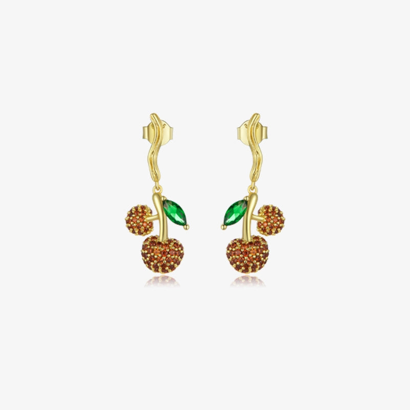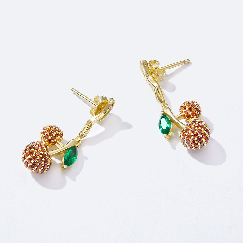 Cute fruit cherry drop earrings in sparkling cubic zirconia create a delectable arrangement on your ears that's yummy enough.?These beautifully designed earrings are sure to become a welcome addition to your jewelry collection. Simple and cute, great for everyday wear, also it is a perfect gift for the person you love. Perfect for kids, and adults at summer!