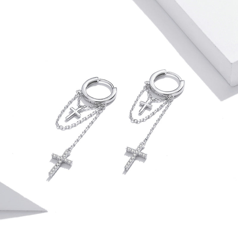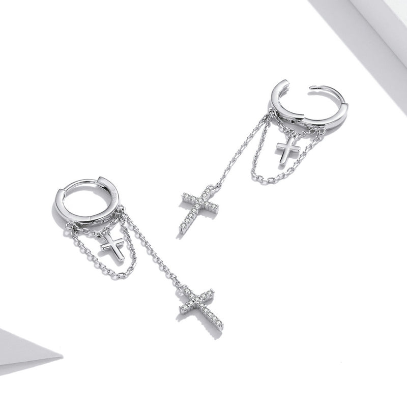 Using quality 925 sterling silver, our dangly cross-chain earrings are hypoallergic and made for sensitive skin. You will love these double-cross chain earrings!