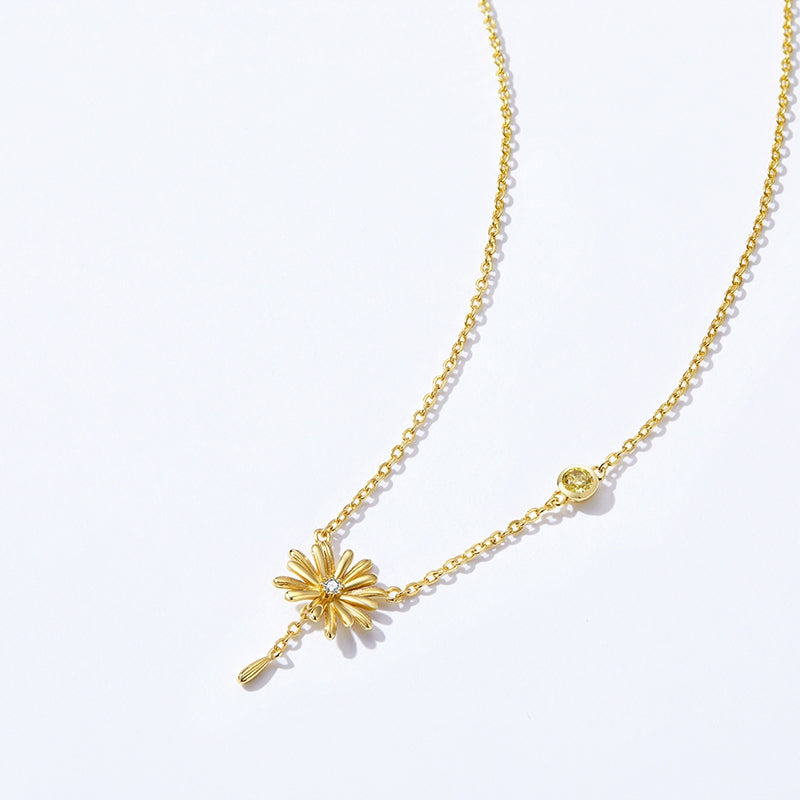 The stamen of the daisy is decorated with bright zircons. And the double-layer petal design is rich in three-dimensionality, highlighting the beauty of the simple and smooth lines of the daisy.