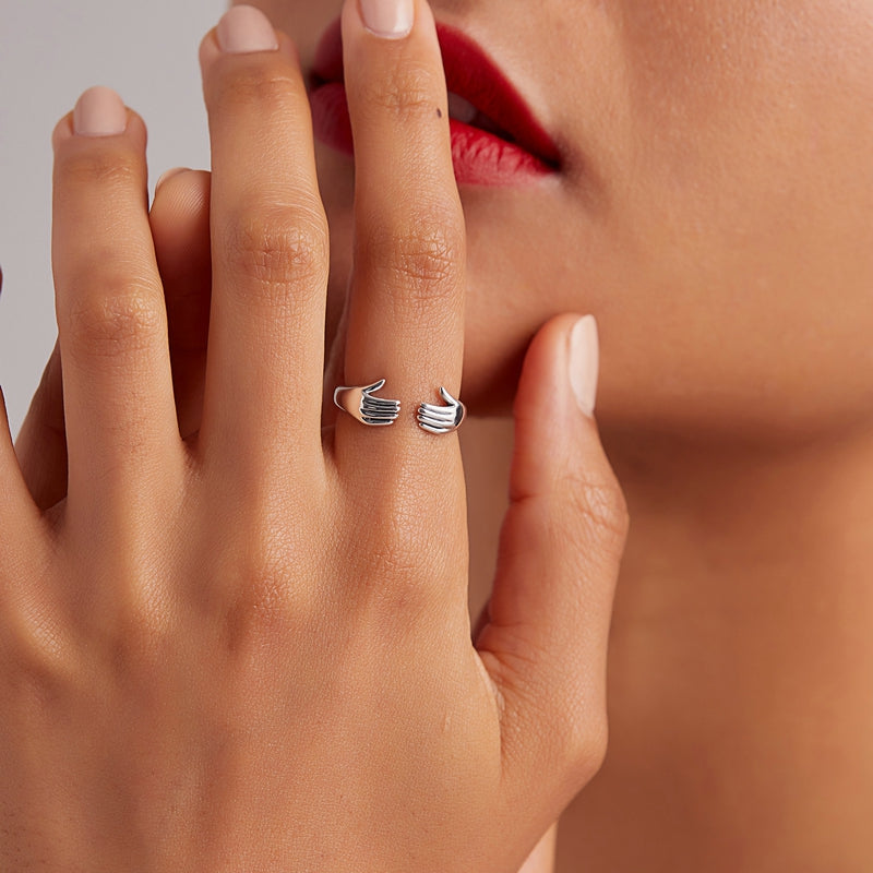 Hugging hands rings made of 925 sterling silver with excellent polishing and electroplating craftsmanship, Our products are polished with high quality to bring a comfortable wearing experience!