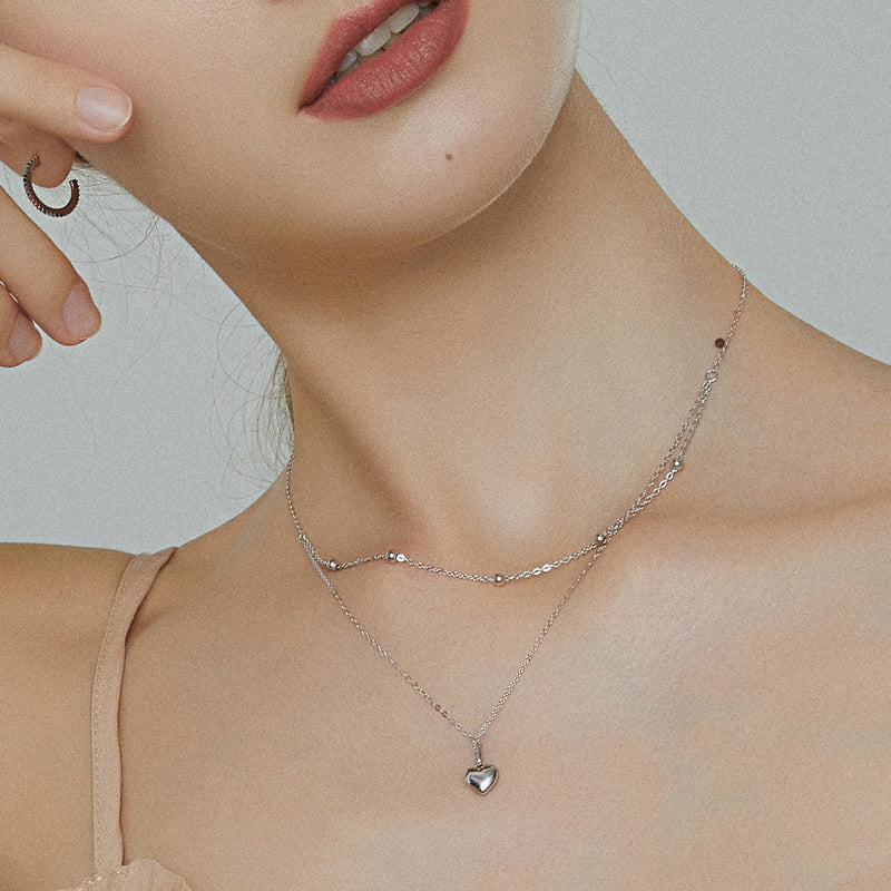 A?modern-inspired delicate 2 layering love?heart chain necklace in sterling silver. Statement-making wore alone or teamed together.?Perfect For those who love high-quality jewelry Another Lovely Girl Almighty Jewelry Design Thoughtful gift for a special someone.?This double heart chain layering necklace platinum on sterling silver will be perfect for fashion women.
