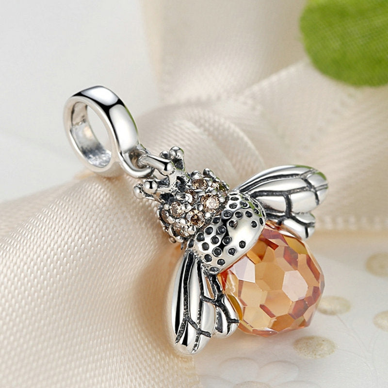 The gorgeous design of the Czech diamonds bee pendant necklace makes it an unusual charm to add to your collection. This honey bee necklace is crafted in sterling silver. Worn individually on your neck will never go out of style. Tell your own story on your neck with a bee pendant necklace that is unique to you!