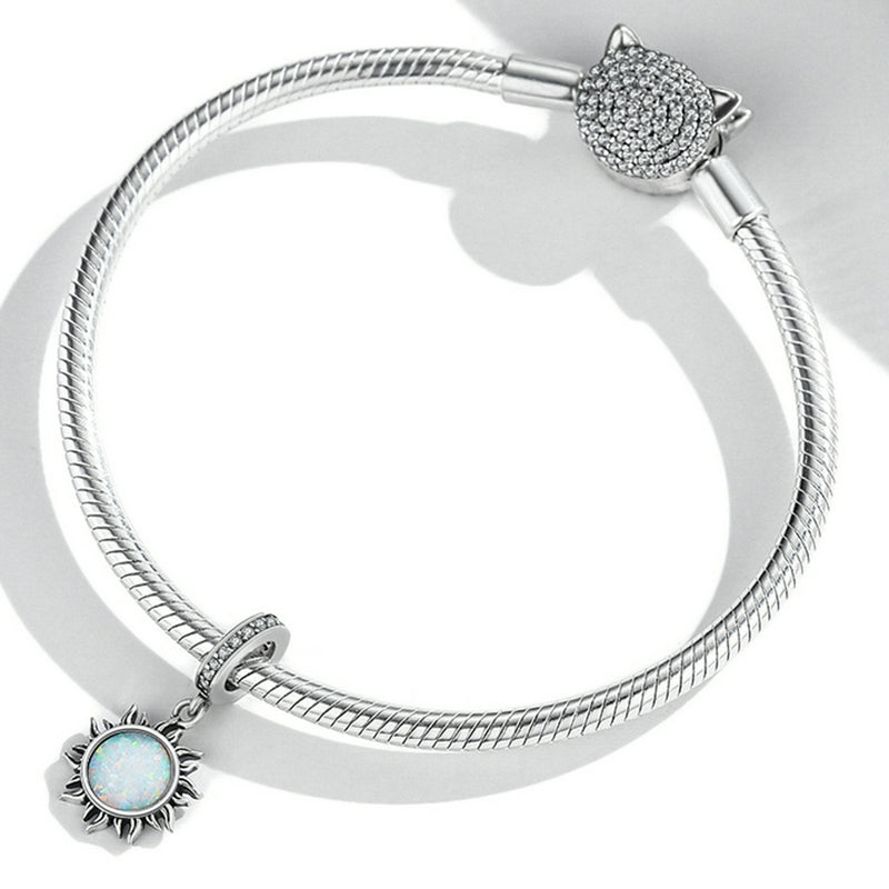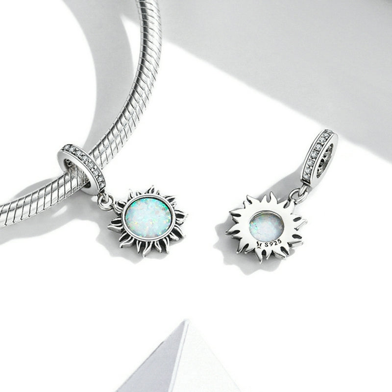 The oxidized silver sun pendant inlaid with opal is sparkling. It is simple yet versatile and can inject vitality into your outfit.