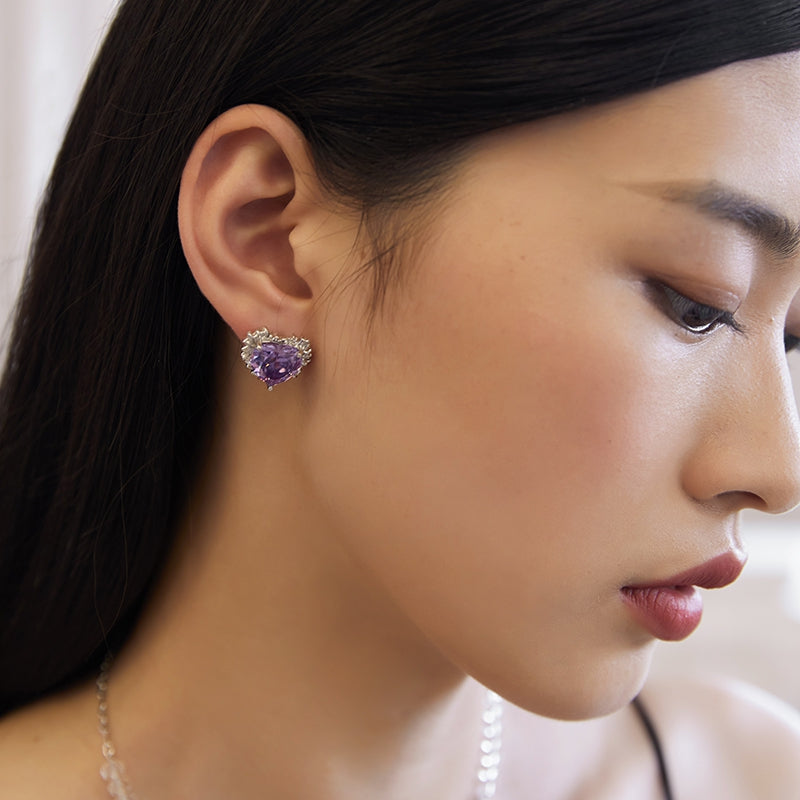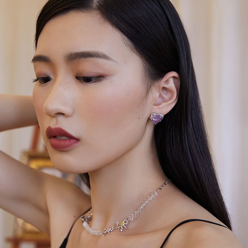 The large love zircons are paired with hand-forged folds, like a girl's heart that is deliberately hidden. The mysterious attribute of purple makes people want to get close.
