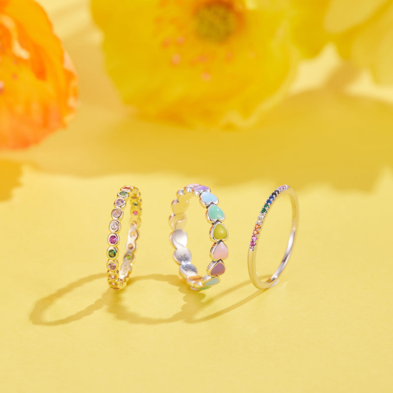 The Bamoer colorful rainbow ring perfectly captures the beauty of nature. These original rainbow silver finger rings can be perfectly matched with other layered styles. This best friendship ring in 3 sterling silver will be perfect for friends!