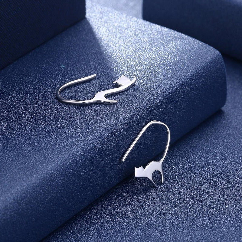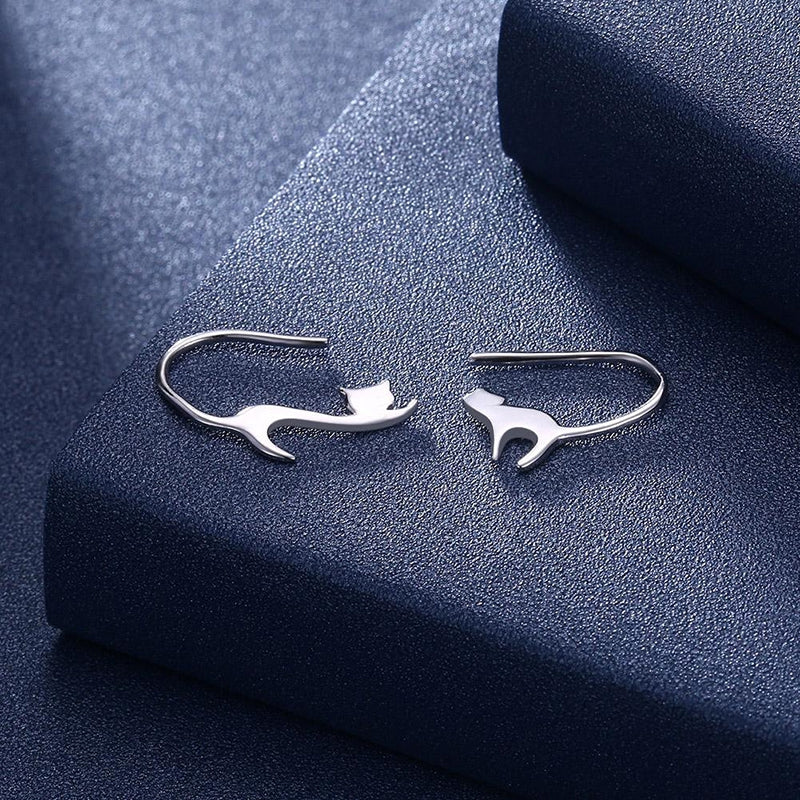 These?cute sterling silver cat stud cuff Earrings shall be a gorgeous set adorning your ears. They are whimsical yet stunning, a pair of complimenting cats, one?stretching out and the other aching its back. The silver is polished to reflect the light and will catch everyone��s eye. Perfect for any occasion.