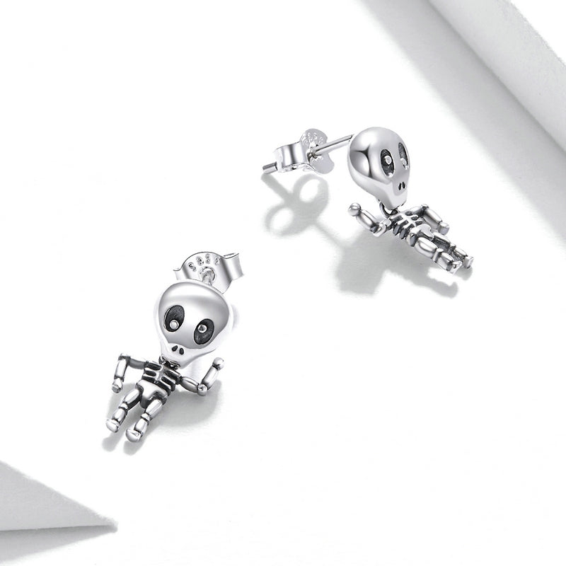 These spooky silver skeleton earrings are a perfect decor for Halloween. The silver skeleton with moveable limbs looks super cute. A great Halloween stud earring for kids matches with all kinds of costumes.?