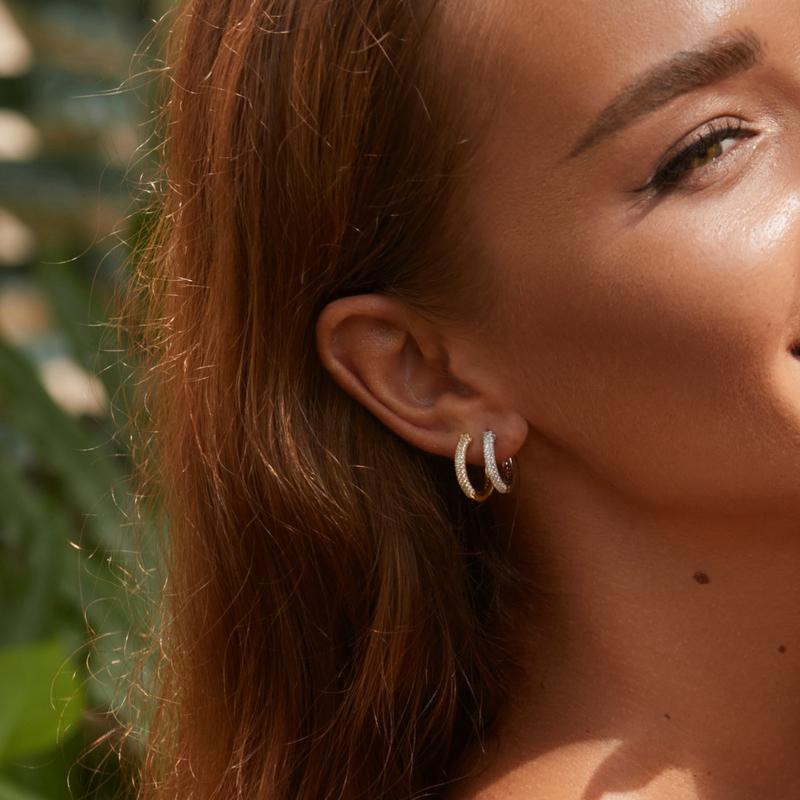 The simple small huggie hoop earrings?are crafted from 925 sterling silver. Adorned with?bright cubic zirconia, this silver gemstone hoop earrings are suitable for daily wearing. The small silver hoops can also show your unique elegant temperament.
