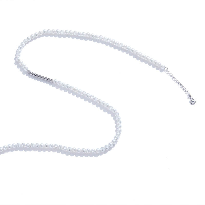 White freshwater pearl necklace women's fashion choker-round pearl shell beads form a subtle entanglement between the neck. White and lustrous, adding feminine light. Simple design to modify the neckline, warm pearl set off the skin, showing the contrasting charms. A few white gold plated on sterling silver beads shows off the smart designs also. Meanwhile, the chain can be slid and the size can be adjusted at will.?